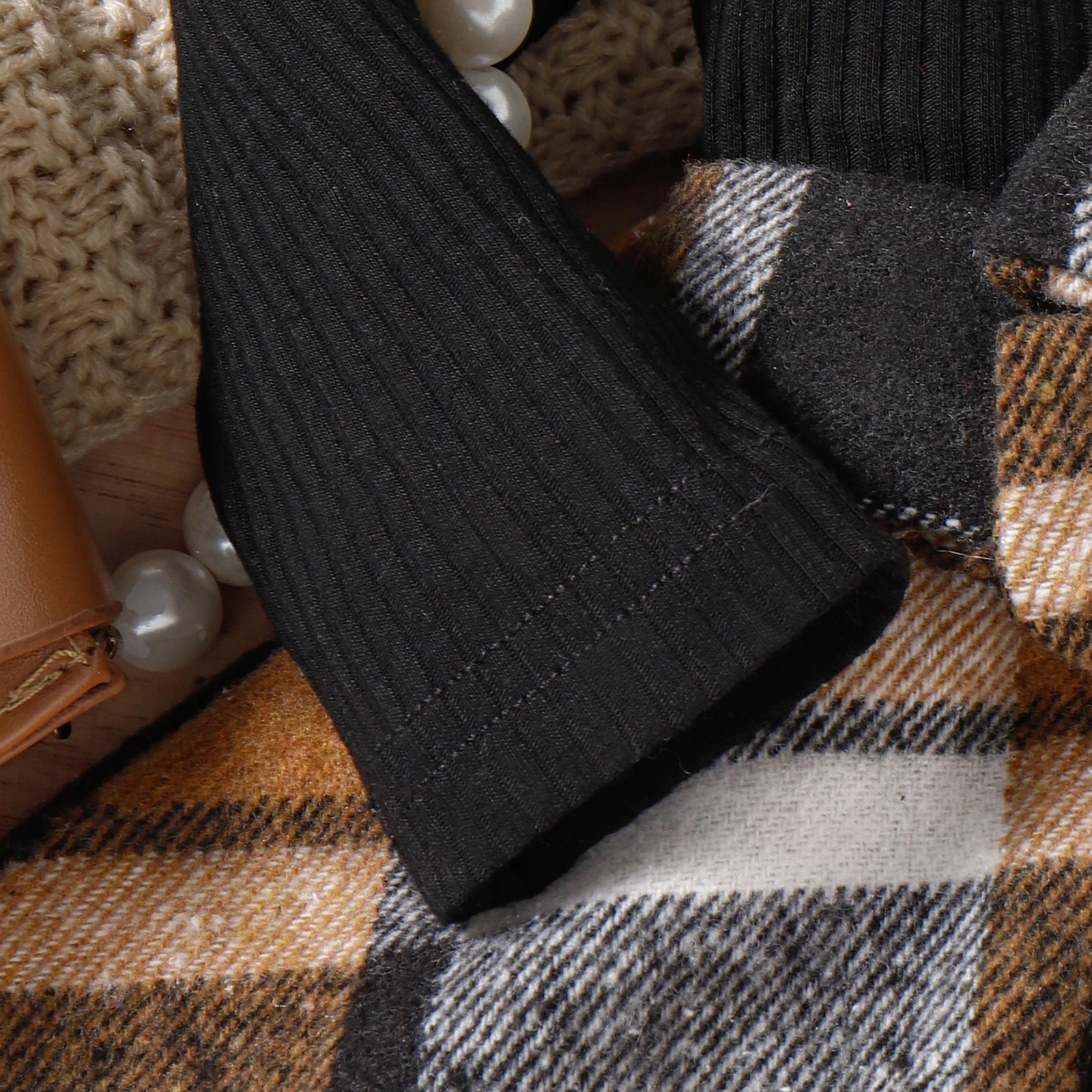 3PCS Autumn And Winter Girls Aged 1-4 Are Fashionable And Foreign, Solid Color High-Collar Long-Sleeved Top + Plaid Skirt + Hat